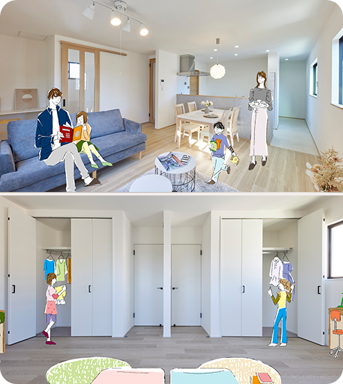 本当に必要とされる機能とは何だろうか・・・ 性能を兼ね備えたデザインとは・・・ そして、ライフステージの変化にあわせ、いつでも快適に過ごせる家とは・・・ 成長していくことに終わりがないように、 私たちの家づくりにも、妥協やゴールはありません。 だからこそ私たちは、あらゆる角度から常にアイデアを選りすぐり、 無限の発想で「住みたい」を定義し、自由自在な家を創りつづけていきます。